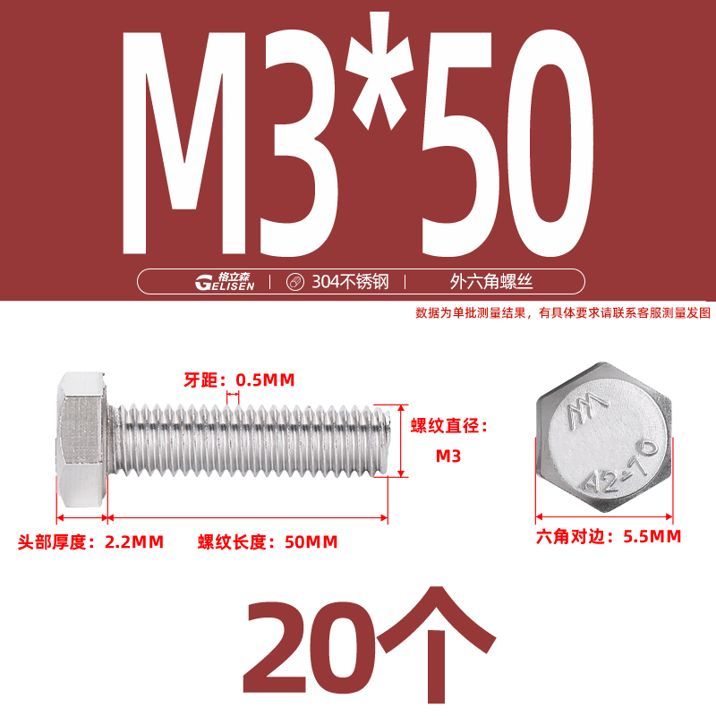 • 商品名称:304不锈钢外六角螺丝加长外六角螺栓螺丝钉大全M3