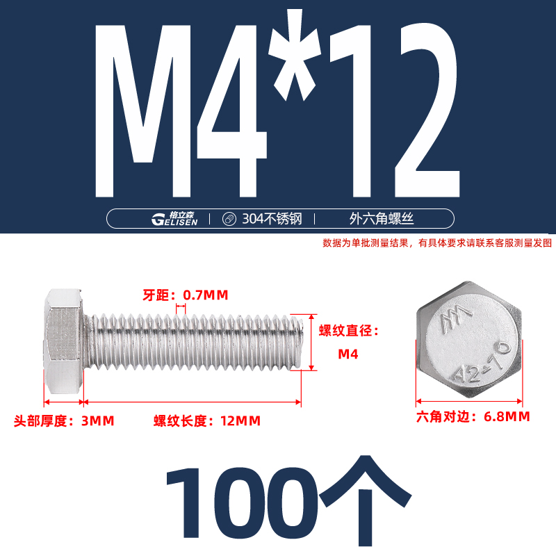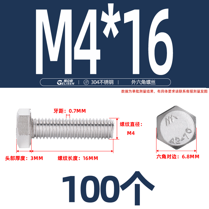 商品编号:304不锈钢外六角螺丝M4-13