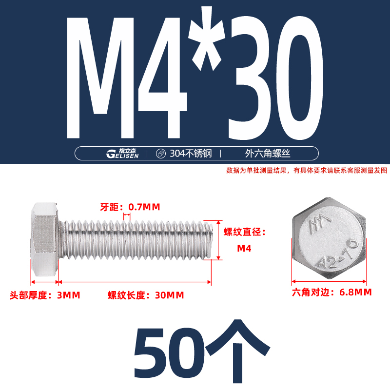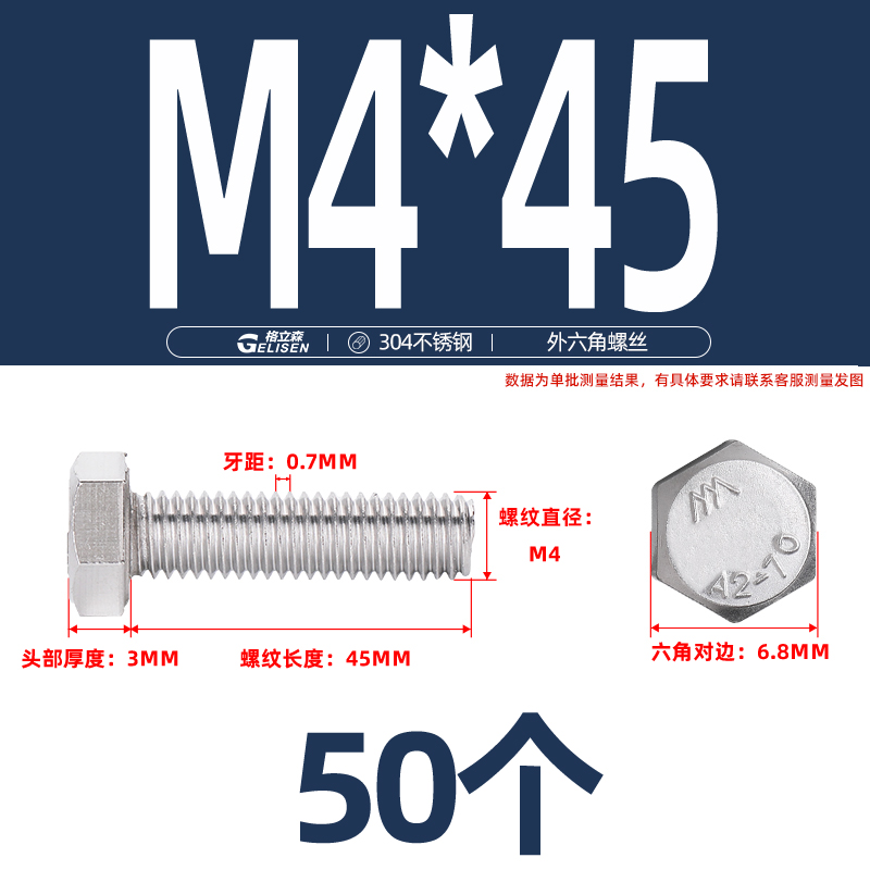 • 商品名称:304不锈钢外六角螺丝加长外六角螺栓螺丝钉大全M4