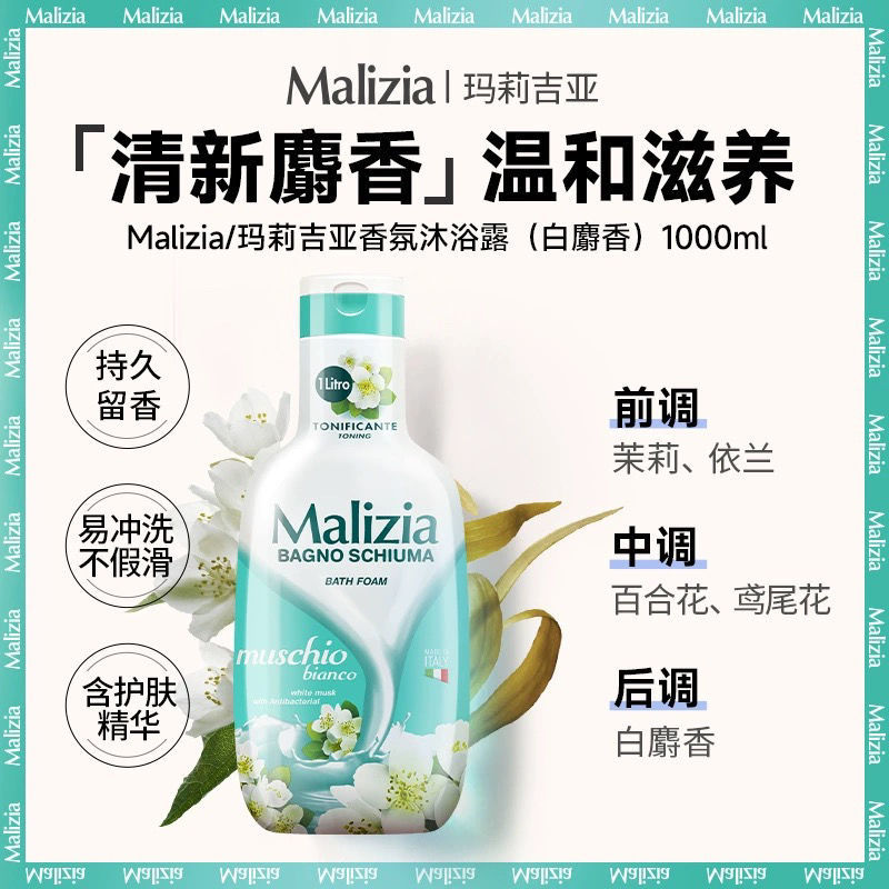 • 商品名称:玛莉吉亚Malizia香氛沐浴露留香意大利沐浴乳1L大容量家庭装