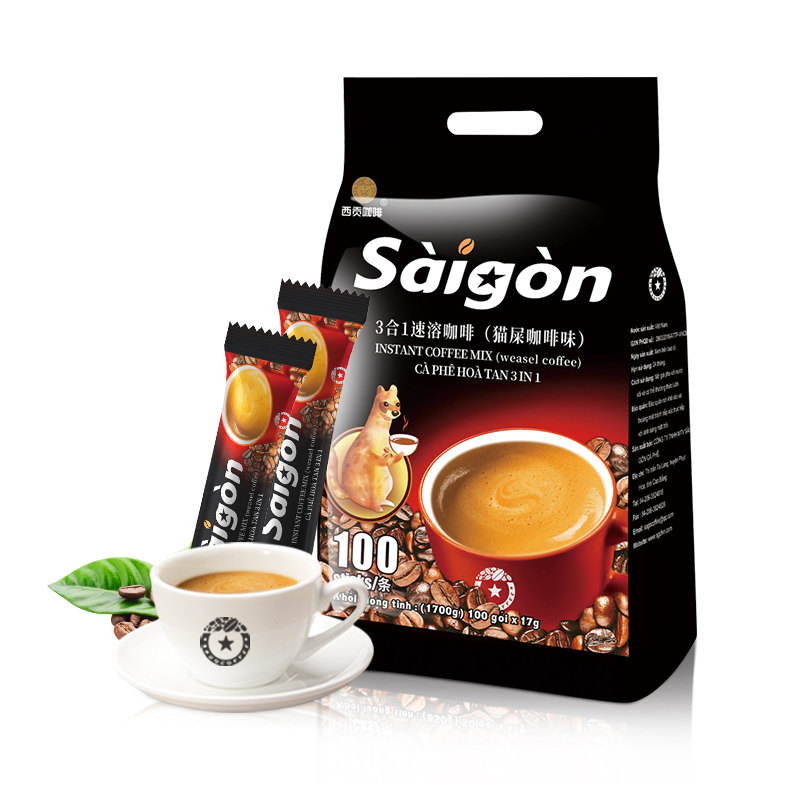 越南进口西贡3合1猫屎咖啡味速溶咖啡粉袋装1700g(17g*100条)
