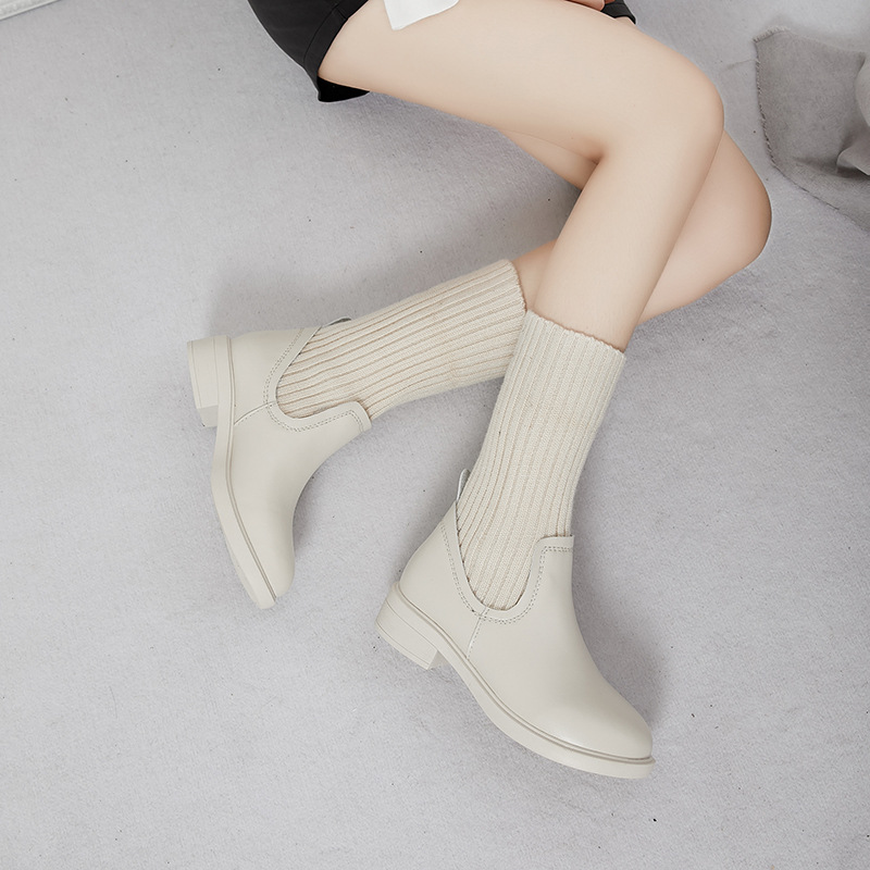• 商品名称:爆款2025秋冬马丁靴真皮厚底毛线短靴针织中筒靴加绒粗跟女袜靴子靴