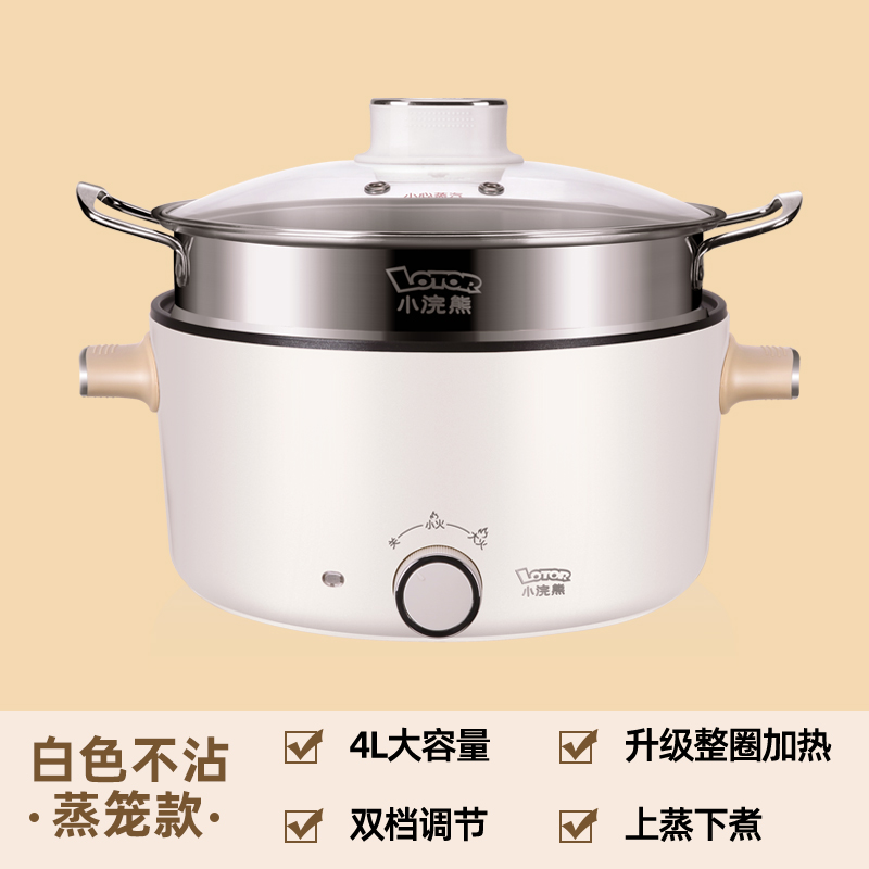 小浣熊电炒锅家用电煮锅宿舍学生小电锅电热炒菜蒸煮一体锅电煮锅