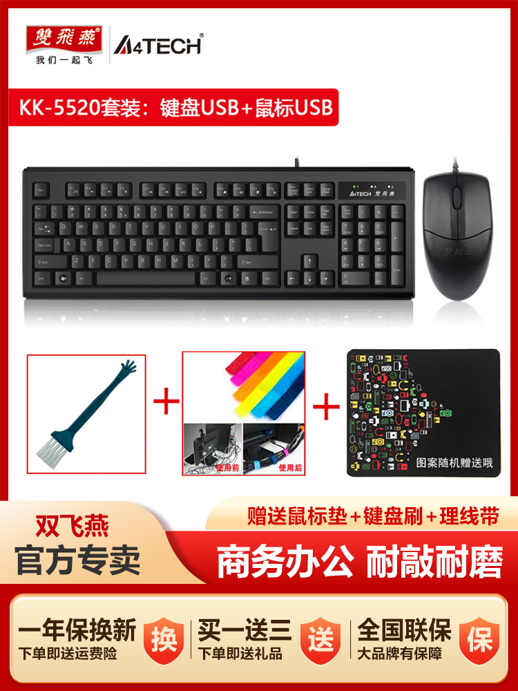 双飞燕有线键盘鼠标套装台式机办公家用游戏USB键鼠PS套装KK-5520