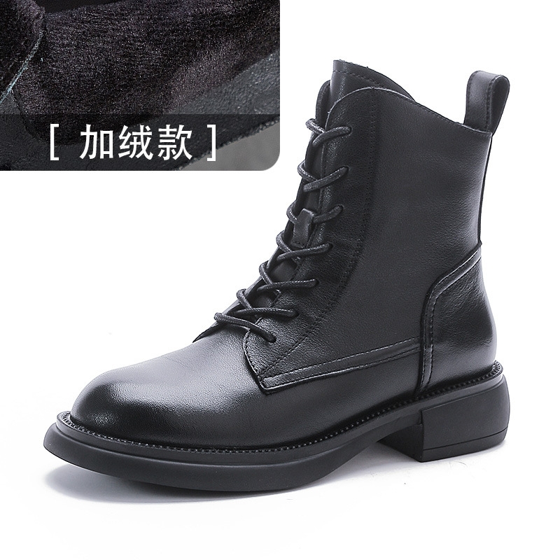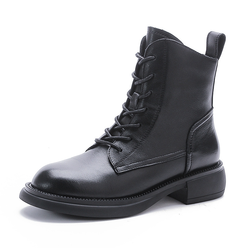 • 商品名称:真皮厚底马丁靴冬季新款短靴侧拉链骑士靴头层牛皮系带短筒靴子