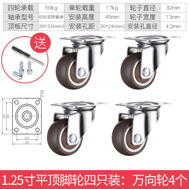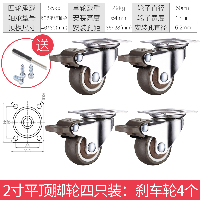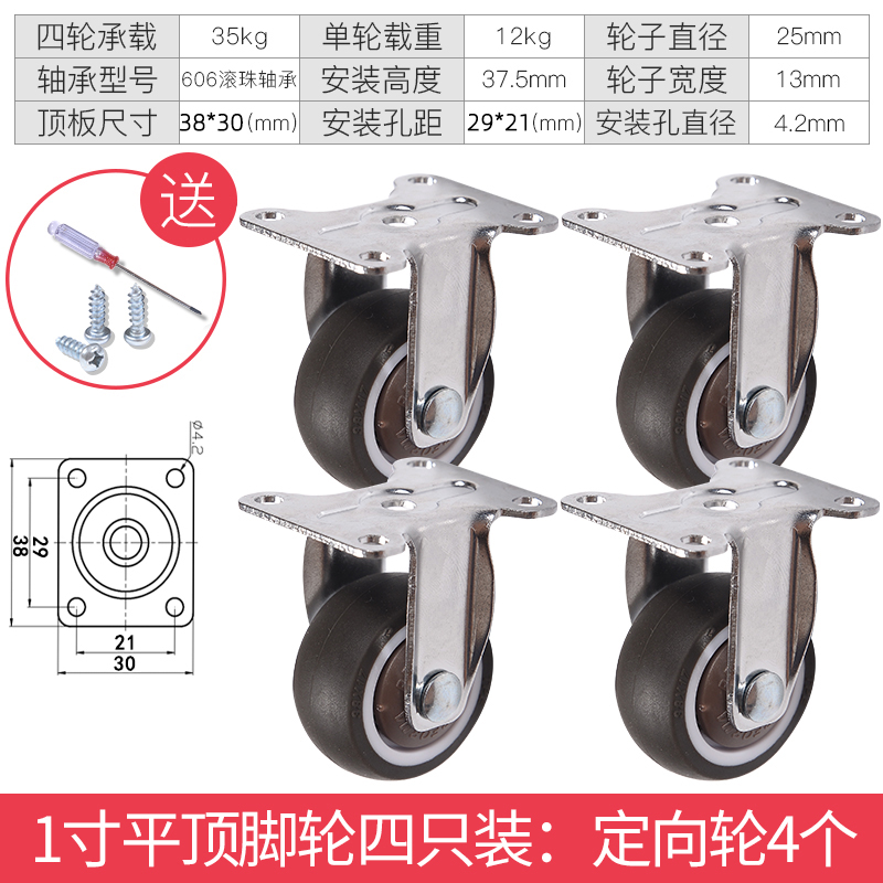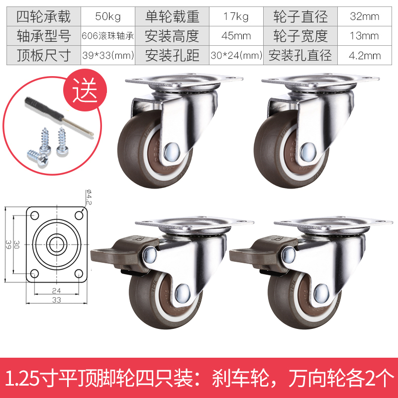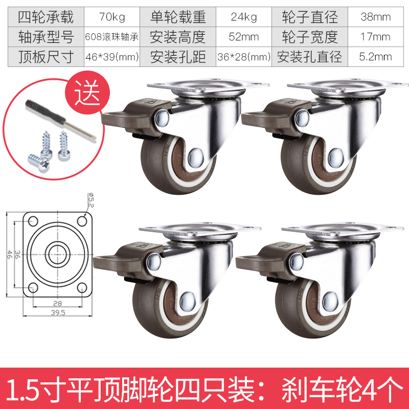 - 颜色分类: 1寸定向轮4个 1寸万向轮4个 1寸刹车轮4个 1寸(定向轮+万向轮)各2个 1寸(定向轮+刹车轮)各2个 1寸(万向轮+刹车轮)各2个 1.25寸定向轮4个 1.25寸万向轮4个 1.25寸刹车轮4个 1.25寸(定向轮+万向轮)各2个 1.25寸(定向轮+刹车轮)各2个 1.25寸(万向轮+刹车轮)各2个 1.5寸定向轮4个 1.5寸万向轮4个 1.5寸刹车轮4个 1.5寸(定向轮+万向轮)各2个 1.5寸(定向轮+刹车轮)各2个 1.5寸(万向轮+刹车轮)各2个 2寸定向轮4个 2寸万向轮4个 2寸刹车轮4个 2寸(定向轮+万向轮)各2个 2寸(定向轮+刹车轮)各2个 2寸(万向轮+刹车轮)各2个