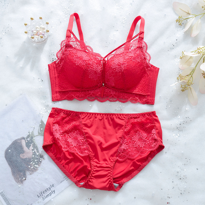 • 商品名称:大红色喜庆本命年美胸小胸内衣上托聚拢调整型大胸显小女文胸套装