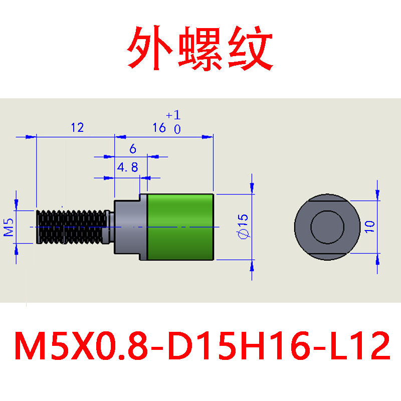 • 商品名称:聚氨酯压块带扳手位螺杆热粘包胶PU推压头内外螺纹不锈钢缓冲螺丝