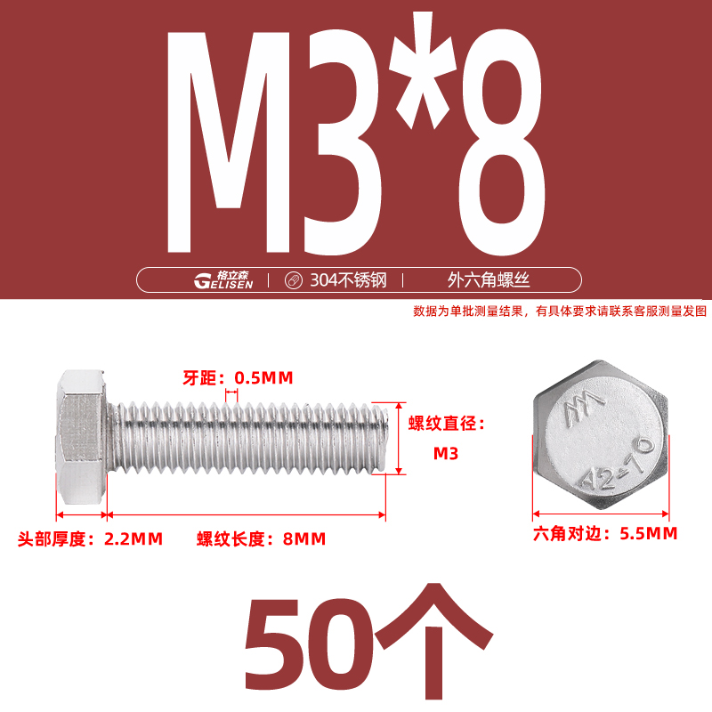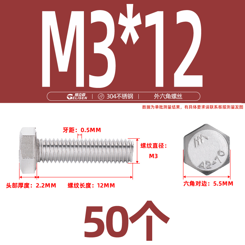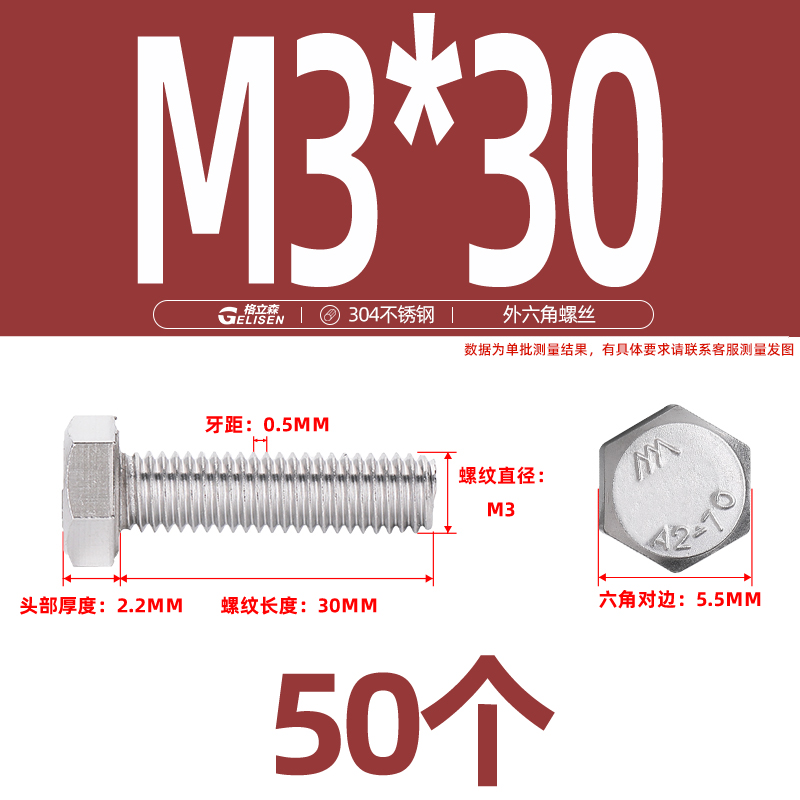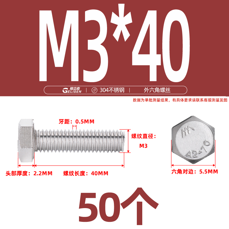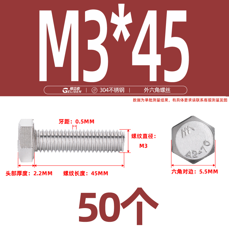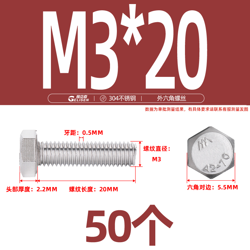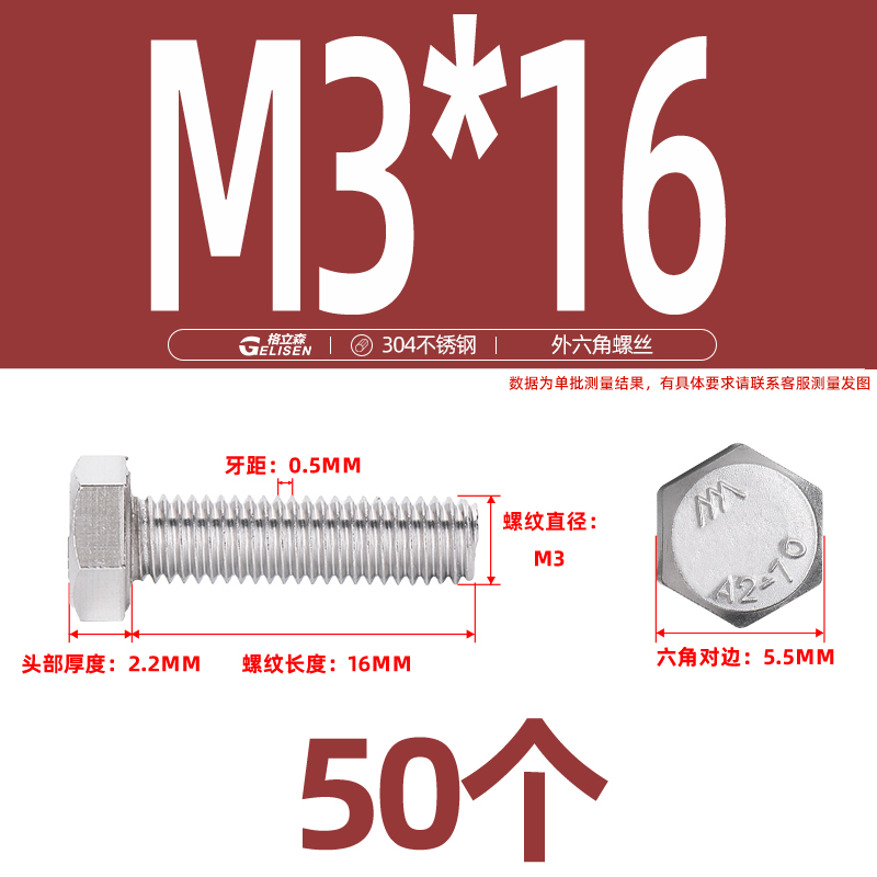 • 商品名称:304不锈钢外六角螺丝加长外六角螺栓螺丝钉大全M3