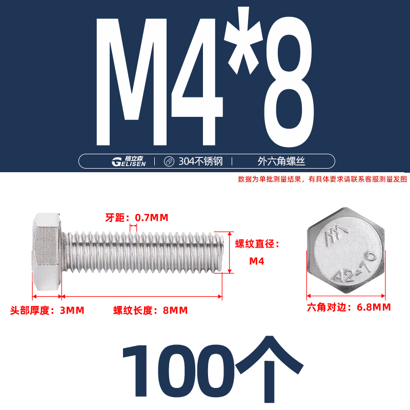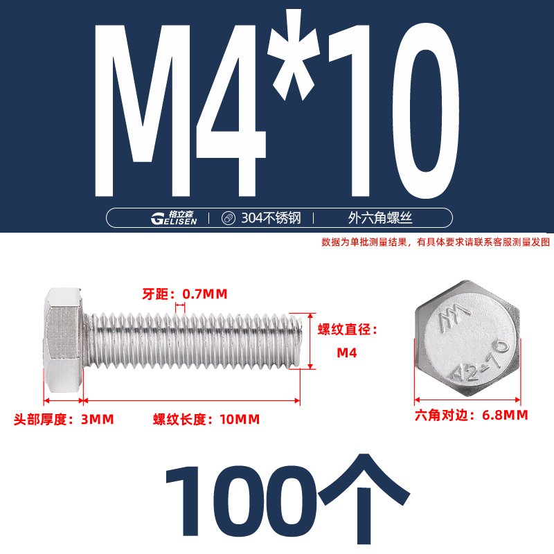 商品编号:304不锈钢外六角螺丝M4-13