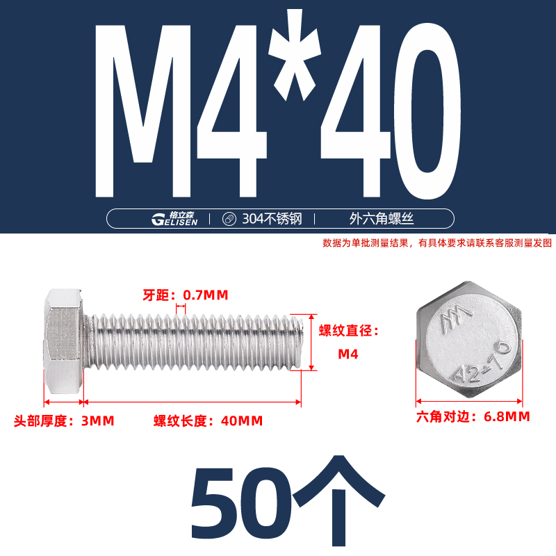 • 商品名称:304不锈钢外六角螺丝加长外六角螺栓螺丝钉大全M4