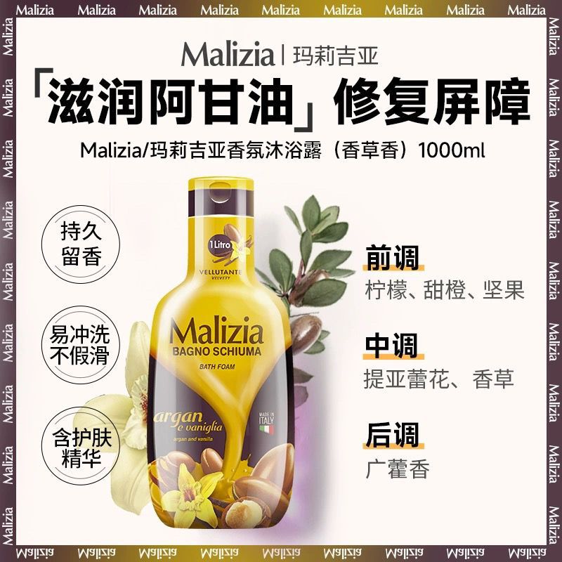 • 商品名称:玛莉吉亚Malizia香氛沐浴露留香意大利沐浴乳1L大容量家庭装