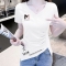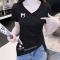 • 商品名称:纯棉短袖V领t恤女夏季2024年新款时尚小衫不规则修身上衣女设计感