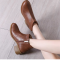 牛皮短靴女妈妈皮鞋中跟棕色加绒马丁靴女真皮软底粗跟中年女靴子