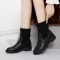 爆款2025秋冬马丁靴真皮厚底毛线短靴针织中筒靴加绒粗跟女袜靴子靴