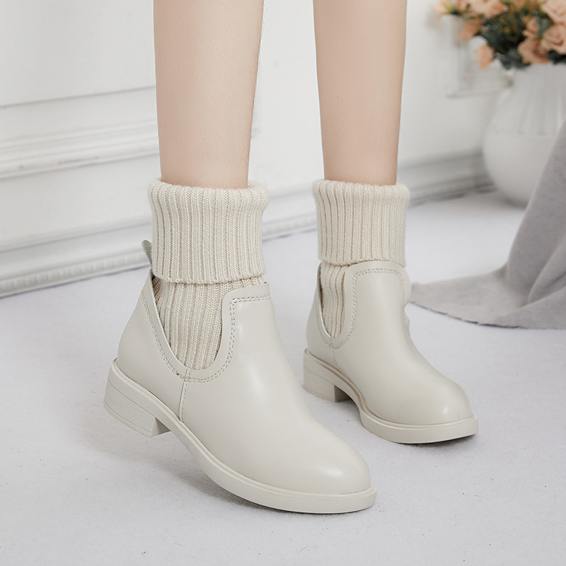 • 商品名称:爆款2025秋冬马丁靴真皮厚底毛线短靴针织中筒靴加绒粗跟女袜靴子靴