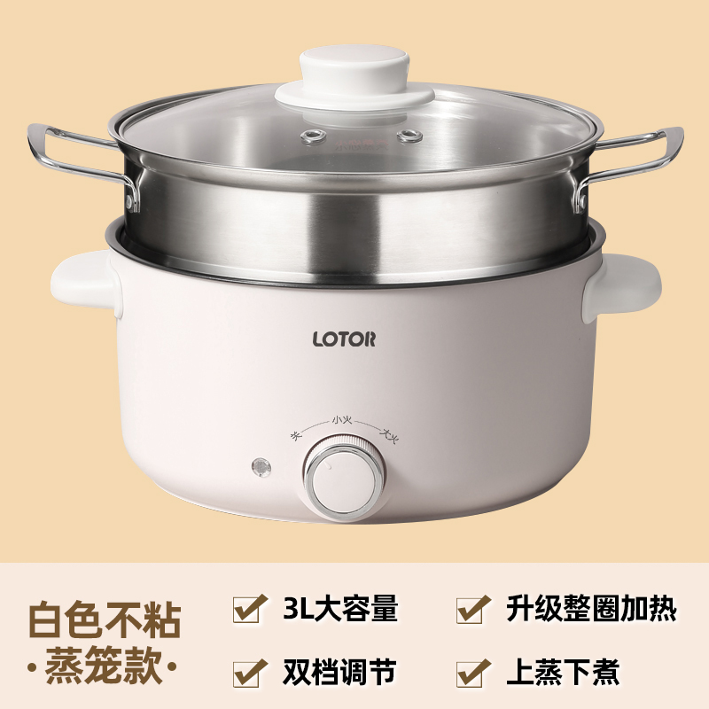 小浣熊电炒锅家用电煮锅宿舍学生小电锅电热炒菜蒸煮一体锅电煮锅