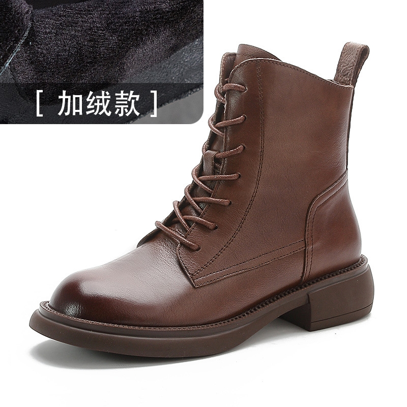 • 商品名称:真皮厚底马丁靴冬季新款短靴侧拉链骑士靴头层牛皮系带短筒靴子