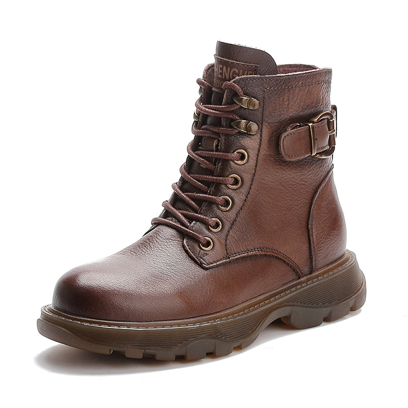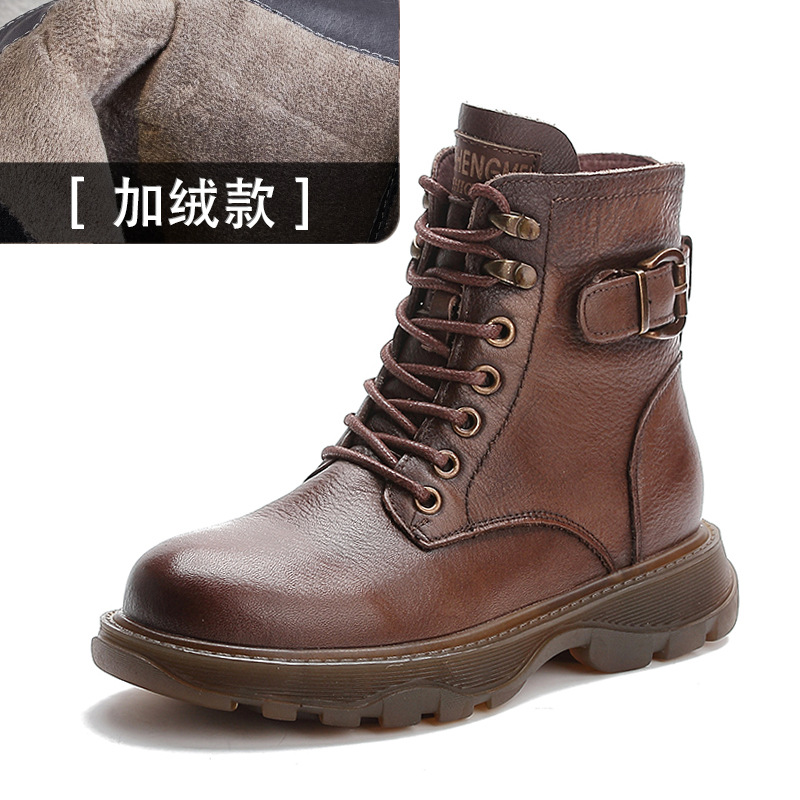 • 商品名称:真皮百搭冬季加绒马丁靴女英伦风潮ins厚底复古头层牛皮短靴软底