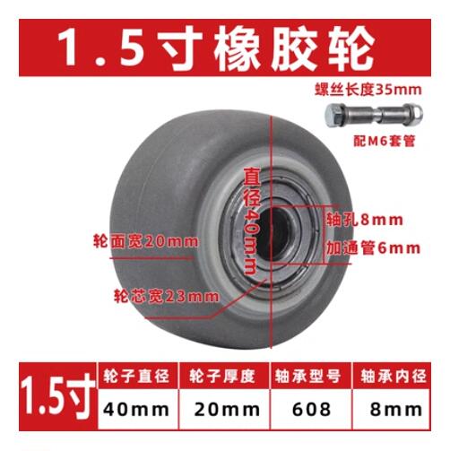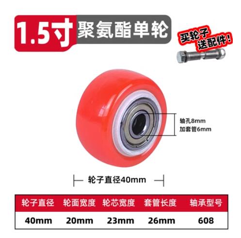产品描述: 材质: 聚氨酯颜色分类: 1.5寸黑单轮 2寸黑单轮 2.5寸黑单轮 3寸黑单轮 4寸黑单轮 5寸黑单轮 6寸黑单轮 8寸黑单轮 1.5寸灰橡胶单轮 2寸灰橡胶单轮 1.5寸红聚氨酯单轮 2寸红聚氨酯单轮 2.5寸红聚氨酯单轮 3寸红聚氨酯单轮 4寸红聚氨酯单轮 5寸红聚氨酯单轮